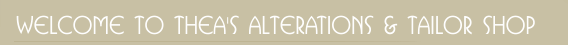 We are very proud of our Tailor Shop and it is our top priority! Any alterations are restored to the original quality level. If a hand stitch is taken out... it goes back in.While there are limitation to the adjustments that can be made to a garment,we have the extensive ability to do major alterations that many shops can't. We can alter garments to reflect a more modern silhouette.From simply hemming a pair of your favorite trousers to fitting a designer Jacket or dress to ensure the perfect fit. Thea's Alterations & Tailor Shop ensures every alteration is first class and guaranteed.